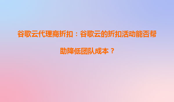 2025-08-24谷歌云代理商折扣:谷歌云的折扣活動(dòng)能否幫助降低團(tuán)隊(duì)成本? 在當(dāng)今數(shù)字化時(shí)代,云計(jì)算已成為企業(yè)運(yùn)營(yíng)不可或缺的一部分。無論是初創(chuàng)公司還是大型企業(yè),都在尋求高效、穩(wěn)定且成本可控的云服務(wù)解決方案。谷歌云(...