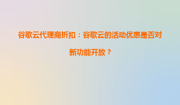 2025-08-24谷歌云代理商折扣:谷歌云的活動(dòng)優(yōu)惠是否對(duì)新功能開放? 在云計(jì)算市場(chǎng)競(jìng)爭(zhēng)日益激烈的今天,谷歌云(GoogleCloud)憑借其強(qiáng)大的技術(shù)實(shí)力和靈活的商業(yè)模式,吸引了大量企業(yè)用戶。而作為谷歌云的重要合作伙伴,谷...