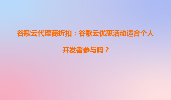 2025-08-24谷歌云代理商折扣:谷歌云優(yōu)惠活動(dòng)適合個(gè)人開發(fā)者參與嗎? 一、谷歌云的核心優(yōu)勢(shì) 谷歌云(GoogleCloudPlatform,GCP)作為全球三大公有云服務(wù)商之一,憑借其技術(shù)實(shí)力和生態(tài)整合能力,為開發(fā)...