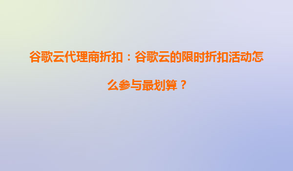 2025-08-23谷歌云代理商折扣:如何最劃算地參與谷歌云限時(shí)折扣活動(dòng)? 一、谷歌云的核心優(yōu)勢(shì) 在探討如何參與谷歌云限時(shí)折扣前,首先需要了解谷歌云的核心競(jìng)爭(zhēng)力: 全球基礎(chǔ)設(shè)施:覆蓋200+國(guó)家/地區(qū)的30+數(shù)據(jù)中心...