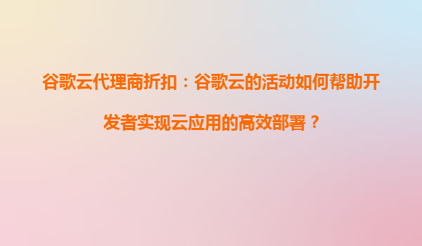 2025-08-15谷歌云代理商折扣:如何通過(guò)谷歌云活動(dòng)幫助開(kāi)發(fā)者高效部署云應(yīng)用? 一、谷歌云的核心優(yōu)勢(shì) 谷歌云(GoogleCloudPlatform,GCP)作為全球領(lǐng)先的云服務(wù)提供商,憑借其技...