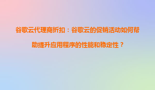 4008-020-360 谷歌云代理商折扣:谷歌云的促銷活動(dòng)如何幫助提升應(yīng)用程序的性能和穩(wěn)定性? 引言 隨著云計(jì)算技術(shù)的快速發(fā)展,越來(lái)越多的企業(yè)和開(kāi)發(fā)者選擇將應(yīng)用程序遷移到云端...