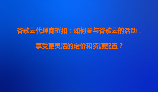 2025-08-15谷歌云代理商折扣:如何參與谷歌云的活動(dòng),享受更靈活的定價(jià)和資源配置? 一、為什么選擇谷歌云? 谷歌云(GoogleCloud)作為全球領(lǐng)先的云計(jì)算服務(wù)提供商,以...