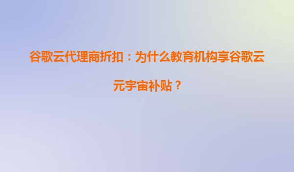 4008-020-360 谷歌云代理商折扣:為什么教育機(jī)構(gòu)享谷歌云元宇宙補(bǔ)貼? 引言 在數(shù)字化轉(zhuǎn)型的浪潮中,云計(jì)算已成為教育機(jī)構(gòu)提升教學(xué)質(zhì)量和科研能力的重要工具。谷歌云(Google...