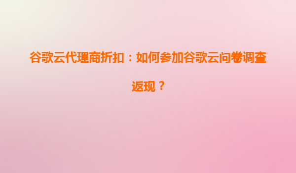2025-08-08谷歌云代理商折扣:如何通過問卷調(diào)查獲取返現(xiàn)優(yōu)惠 作為全球領(lǐng)先的云計算服務(wù)提供商,谷歌云憑借其強(qiáng)大的技術(shù)實(shí)力和創(chuàng)新的解決方案,為企業(yè)用戶提供了高效、安全且靈活的云服務(wù)。通過參與谷歌云代理商組織的問卷調(diào)...