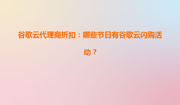 2025-08-06谷歌云代理商折扣:哪些節(jié)日有谷歌云閃購(gòu)活動(dòng)? 在云計(jì)算市場(chǎng)競(jìng)爭(zhēng)日益激烈的今天,谷歌云(GoogleCloud)憑借其強(qiáng)大的技術(shù)實(shí)力和全球化的基礎(chǔ)設(shè)施,成為眾多企業(yè)的首選。而通過(guò)谷歌云代理商(GoogleCloud...