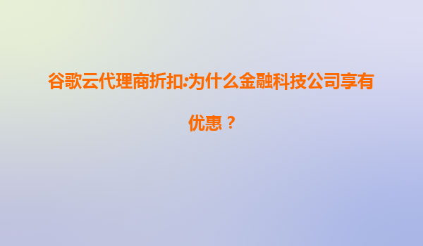 4008-020-360 谷歌云代理商折扣:為什么金融科技公司享有優(yōu)惠? 引言 谷歌云(GoogleCloud)是全球領(lǐng)先的云計算服務(wù)提供商之一,為企業(yè)提供高效、安全和可擴展的云解決方案。近年來,越來越多的金融科技(FinTech)公...