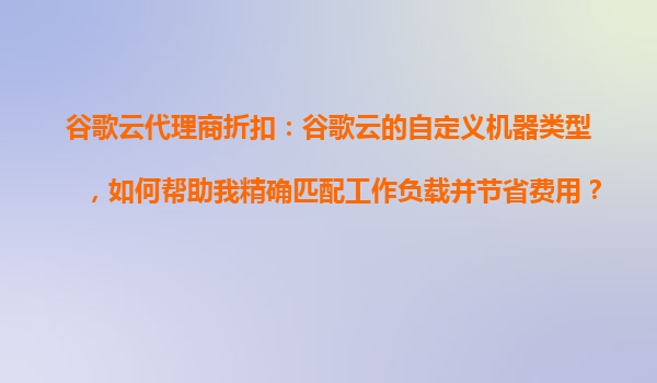 2025-10-29谷歌云代理商折扣:谷歌云的自定義機(jī)器類型,如何幫助您精確匹配工作負(fù)載并節(jié)省費(fèi)用? 引言 在當(dāng)今競(jìng)爭(zhēng)激烈的商業(yè)環(huán)境中,企業(yè)需要高效、靈活且經(jīng)濟(jì)的云計(jì)算解決方案來(lái)支持其業(yè)務(wù)發(fā)展。谷歌云平臺(tái)(GoogleCloudPl...
