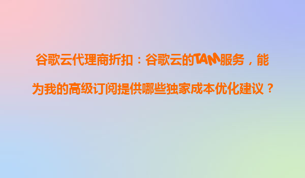 2025-10-28谷歌云TAM服務(wù):為高級(jí)訂閱量身定制的成本優(yōu)化方案 谷歌云TAM服務(wù)的核心價(jià)值 谷歌云的技術(shù)客戶經(jīng)理(TAM)服務(wù)是專為企業(yè)高級(jí)訂閱用戶提供的專屬支持計(jì)劃。通過一對(duì)一的專業(yè)技術(shù)顧問支持,TAM服務(wù)...