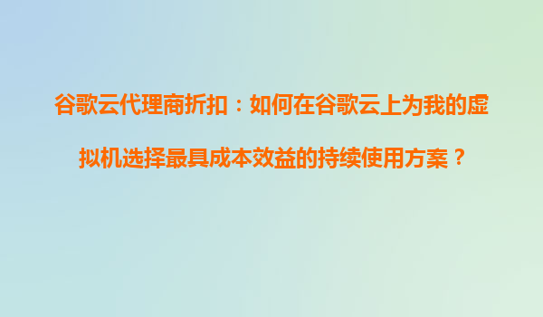 2025-10-25谷歌云代理商折扣:如何在谷歌云上為我的虛擬機(jī)選擇最具成本效益的持續(xù)使用方案? 引言 在云計(jì)算領(lǐng)域,谷歌云(GoogleCloudPlatform,GCP)憑借其強(qiáng)大的基礎(chǔ)...