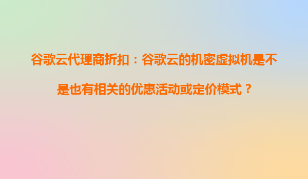 2025-10-24谷歌云代理商折扣:谷歌云機(jī)密虛擬機(jī)優(yōu)惠活動(dòng)與定價(jià)模式解析 一、谷歌云代理商折扣的核心優(yōu)勢(shì) 谷歌云作為全球領(lǐng)先的云計(jì)算服務(wù)提供商,其代理商體系為客戶提供了靈活的采購(gòu)渠道和更具競(jìng)爭(zhēng)力的價(jià)格方案...