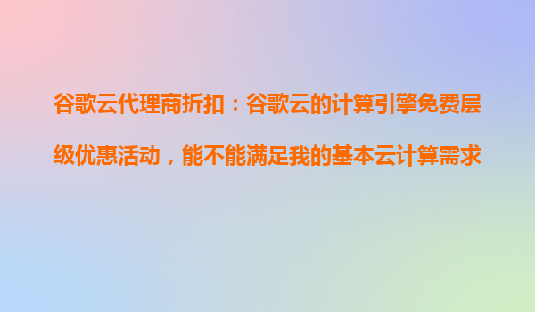 2025-10-24谷歌云代理商折扣:谷歌云的計算引擎免費層級優(yōu)惠活動解析 引言:免費層級的價值與適用性 谷歌云(GoogleCloud)作為全球領(lǐng)先的云計算服務(wù)提供商,其免費層級的計算引擎(ComputeEngine)優(yōu)惠活...