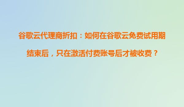2025-10-24谷歌云代理商折扣:如何在谷歌云免費試用期結(jié)束后,只在激活付費賬號后才被收費? 引言 谷歌云(GoogleCloudPlatform,GCP)作為全球領(lǐng)先的云計算服務(wù)提供商之一,以其高性能、高可靠性和靈活的定價策略...