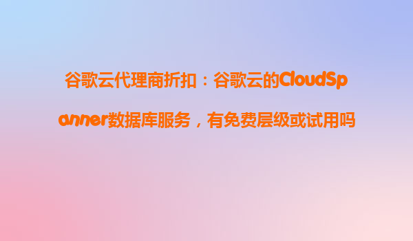 2025-10-21谷歌云代理商折扣:谷歌云的CloudSpanner數(shù)據(jù)庫(kù)服務(wù),有免費(fèi)層級(jí)或試用嗎? 一、谷歌云CloudSpanner簡(jiǎn)介 谷歌云CloudSpanner是全球首個(gè)真正意義上的分布式關(guān)系型數(shù)據(jù)...
