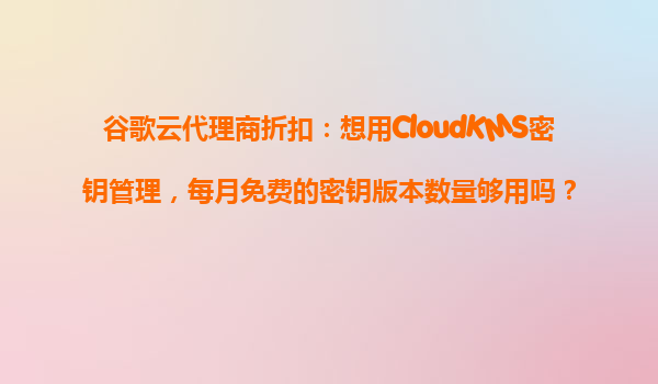4008-020-360 谷歌云代理商折扣:CloudKMS密鑰管理服務(wù)免費(fèi)版本是否夠用? 一、谷歌云代理商折扣的價(jià)值 通過(guò)官方授權(quán)的谷歌云代理商開(kāi)通服務(wù),通??色@得5%-20%的持續(xù)折扣。這不僅適用于常規(guī)計(jì)算資源,也包含CloudKMS...