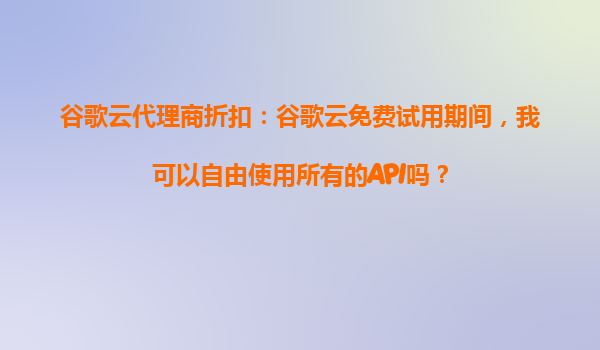 2025-10-21谷歌云代理商折扣:谷歌云免費(fèi)試用期間,我可以自由使用所有的API嗎? 谷歌云免費(fèi)試用概述 谷歌云(GoogleCloudPlatform,GCP)為新用戶(hù)提供300美元的免費(fèi)試用額度,有效期為12個(gè)月。在此期...