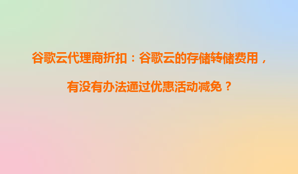 4008-020-360 谷歌云代理商折扣:如何通過優(yōu)惠活動減免存儲轉(zhuǎn)儲費用? 一、谷歌云的核心優(yōu)勢 谷歌云(GoogleCloudPlatform,GCP)作為全球領(lǐng)先的云計算服務(wù)之一,憑借其技...