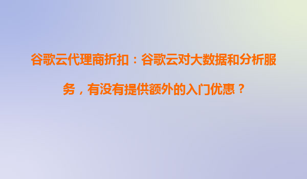 2025-10-20谷歌云代理商折扣:大數(shù)據(jù)與分析服務(wù)的入門優(yōu)惠詳解 一、谷歌云在大數(shù)據(jù)與分析領(lǐng)域的核心優(yōu)勢 谷歌云(GoogleCloudPlatform,GCP)憑借其在全球基礎(chǔ)設(shè)施、技術(shù)創(chuàng)新和行業(yè)實踐中的領(lǐng)先...