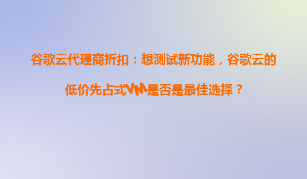2025-10-20谷歌云代理商折扣:如何利用$300贈金支付谷歌云市場(Marketplace)產(chǎn)品? 在當(dāng)今的數(shù)字時代,云計算已成為企業(yè)運營和創(chuàng)新的核心驅(qū)動力。谷歌云(GoogleCloud)作為全球領(lǐng)先的云服務(wù)提供商之一,憑借其強(qiáng)大的...