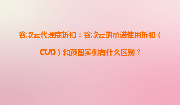 2025-10-19谷歌云代理商折扣:谷歌云的承諾使用折扣(CUD)和預(yù)留實例有什么區(qū)別? 在云計算時代,成本優(yōu)化是企業(yè)上云的核心關(guān)注點之一。谷歌云(GoogleCloud)作為全球領(lǐng)先的云服務(wù)提供商,提供了多種成本優(yōu)化方案,其中包...