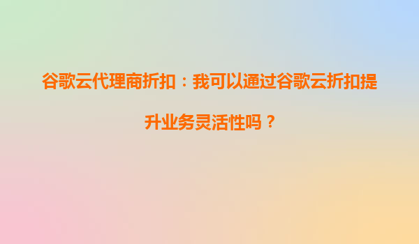 2025-10-14谷歌云代理商折扣:我可以通過谷歌云折扣提升業(yè)務(wù)靈活性嗎? 引言 在當今數(shù)字化快速發(fā)展的時代,云計算已成為企業(yè)提升運營效率、降低成本并增強業(yè)務(wù)靈活性的關(guān)...
