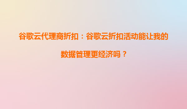 2025-10-14谷歌云代理商折扣:谷歌云折扣活動能讓我的數(shù)據(jù)管理更經(jīng)濟嗎? 一、谷歌云的優(yōu)勢:技術(shù)領(lǐng)先,安全可靠 谷歌云(GoogleCloud)作為全球領(lǐng)先的云計算服務(wù)提供商,憑借其強大的技術(shù)實力和全球基礎(chǔ)設(shè)施,為企...