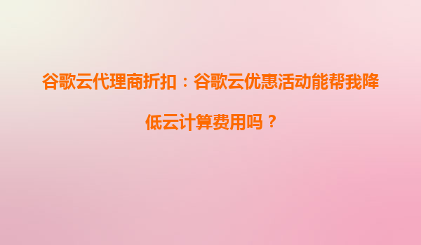 2025-10-14谷歌云代理商折扣:通過谷歌云折扣優(yōu)化項目部署成本 引言 在當今數(shù)字化時代,云計算已成為企業(yè)IT基礎(chǔ)設(shè)施的核心組成部分。作為全球領(lǐng)先的云服務(wù)提供商之一,谷歌云(GoogleCloud)憑借其強大的技術(shù)實...