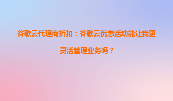 2025-10-14谷歌云代理商折扣:谷歌云優(yōu)惠活動(dòng)能讓我更靈活管理業(yè)務(wù)嗎? 引言 在當(dāng)今數(shù)字化快速發(fā)展的時(shí)代,云計(jì)算已成為企業(yè)提升效率、降低成本、增強(qiáng)靈活性的關(guān)鍵工具。谷歌云作為全球領(lǐng)先的云服務(wù)提供商之...