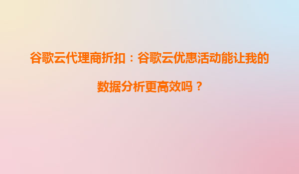 2025-10-13谷歌云代理商折扣:谷歌云優(yōu)惠活動(dòng)能讓我的數(shù)據(jù)分析更高效嗎? 引言:數(shù)據(jù)分析與云計(jì)算的必然結(jié)合 在當(dāng)今數(shù)據(jù)驅(qū)動(dòng)的商業(yè)環(huán)境中,高效的數(shù)據(jù)分析能力已成為企業(yè)競(jìng)爭(zhēng)力的核心。然而,傳統(tǒng)...