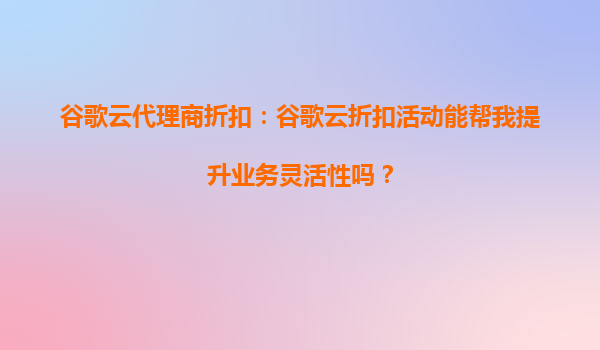 2025-10-11谷歌云代理商折扣:谷歌云折扣活動(dòng)能幫我提升業(yè)務(wù)靈活性嗎? 引言 在當(dāng)今快速變化的商業(yè)環(huán)境中,企業(yè)需要靈活、高效且可擴(kuò)展的云服務(wù)來支持其業(yè)務(wù)發(fā)展。谷歌云(GoogleCloud)作為全球...