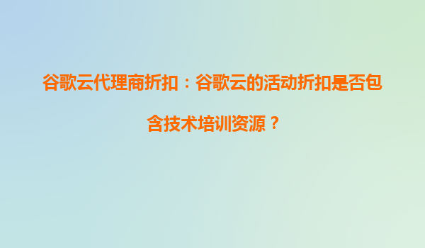2025-10-05谷歌云代理商折扣:谷歌云的活動折扣是否包含技術(shù)培訓(xùn)資源? 引言 隨著云計算技術(shù)的快速發(fā)展,越來越多的企業(yè)開始將業(yè)務(wù)遷移到云端。谷歌云(GoogleCloud)作...