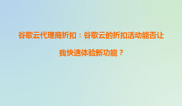 2025-10-05谷歌云代理商折扣:谷歌云的折扣活動(dòng)能否讓我快速體驗(yàn)新功能? 一、谷歌云代理商折扣的核心價(jià)值 谷歌云代理商提供的折扣活動(dòng),本質(zhì)上是降低用戶使用云計(jì)算資源的門檻。通過代理商渠道,企業(yè)或個(gè)人...
