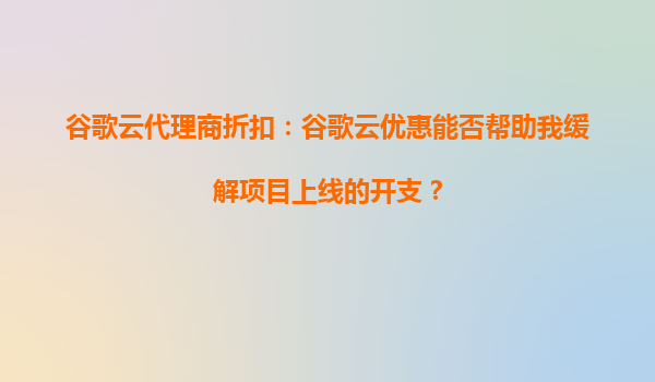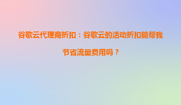 2025-10-02谷歌云代理商折扣:我能否間接通過谷歌云優(yōu)惠活動獲得定制化套餐? 在當(dāng)今云計算市場競爭激烈的環(huán)境下,谷歌云(GoogleCloudPlatform,簡稱GCP)憑借其強大的基礎(chǔ)設(shè)施、創(chuàng)新的技術(shù)解決方案和靈活的定價策略,...