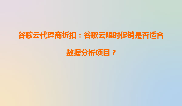 2025-09-29谷歌云代理商限時(shí)折扣:數(shù)據(jù)分析項(xiàng)目的絕佳機(jī)遇 在數(shù)字化轉(zhuǎn)型浪潮中,數(shù)據(jù)分析已成為企業(yè)決策的核心驅(qū)動(dòng)力。而谷歌云的限時(shí)促銷(xiāo)活動(dòng),尤其是通過(guò)代理商提供的額外折扣,為數(shù)據(jù)分析項(xiàng)目帶來(lái)了顯著的性?xún)r(jià)比優(yōu)勢(shì)。本文...