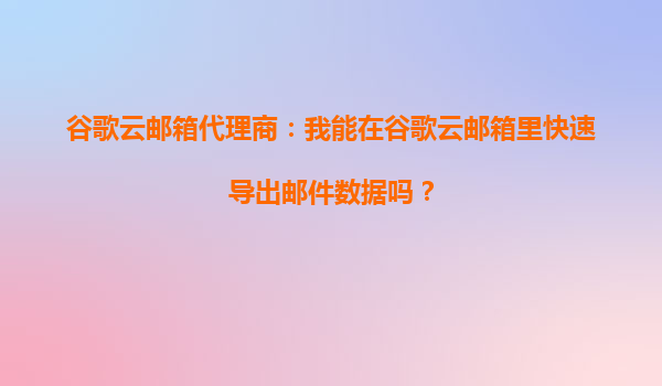 標(biāo)題"谷歌云郵箱代理商:我能在谷歌云郵箱里快速導(dǎo)出郵件數(shù)據(jù)嗎?"透露出兩個(gè)關(guān)鍵信息:一是用戶對(duì)數(shù)據(jù)遷移效率的關(guān)注,二是代理商對(duì)谷歌云平臺(tái)功能的驗(yàn)證需求。谷歌云郵箱(如Gmail或Google Workspace企業(yè)郵箱)作為全球領(lǐng)先的云郵件服務(wù),其數(shù)據(jù)導(dǎo)出能力直接影響企業(yè)管理效率,而代理商需明確技術(shù)細(xì)節(jié)以服務(wù)客戶。