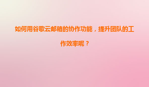 如何用谷歌云郵箱的協(xié)作功能提升團(tuán)隊(duì)工作效率?