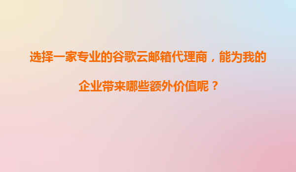 2025-11-05如何找到專業(yè)的谷歌云郵箱代理商,獲取谷歌云郵箱新客免費(fèi)試用和購(gòu)買優(yōu)惠? 一、谷歌云郵箱的優(yōu)勢(shì) 在尋找代理商之前,首先需要了解谷歌云郵箱(GoogleWorkspace,原GSuite)的核心優(yōu)勢(shì),這...