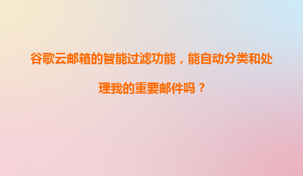 2025-11-05谷歌云郵箱智能過(guò)濾:高效分類與處理重要郵件 在現(xiàn)代職場(chǎng)與個(gè)人通訊中,高效管理郵件是提升生產(chǎn)力的關(guān)鍵。谷歌云郵箱(Gmail)憑借其強(qiáng)大的智能過(guò)濾功能,為用戶提供了自動(dòng)化分類、優(yōu)先級(jí)排序和智...
