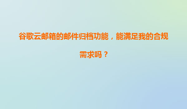 2025-11-04谷歌云郵箱的郵件歸檔功能能否滿足您的合規(guī)需求? 一、谷歌云郵箱郵件歸檔的核心功能 谷歌云郵箱(GoogleWorkspace)的郵件歸檔功能是專為企業(yè)級(jí)合規(guī)需求設(shè)計(jì)的解決方案,主要包含以下核心能...