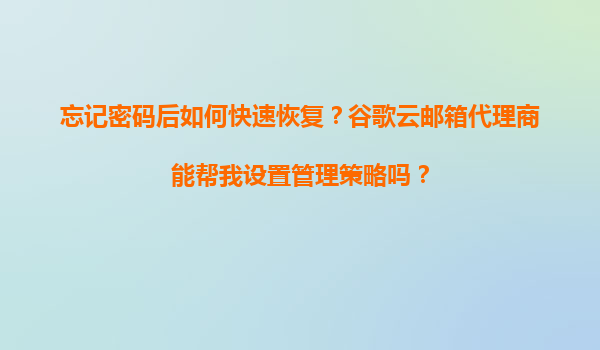2025-11-04忘記密碼后如何快速恢復(fù)?谷歌云郵箱代理商能幫我設(shè)置管理策略嗎? 快速恢復(fù)谷歌云郵箱密碼的步驟 如果您忘記了谷歌云郵箱賬戶密碼,可以通過以下步驟快速恢復(fù)訪問權(quán)限: ...