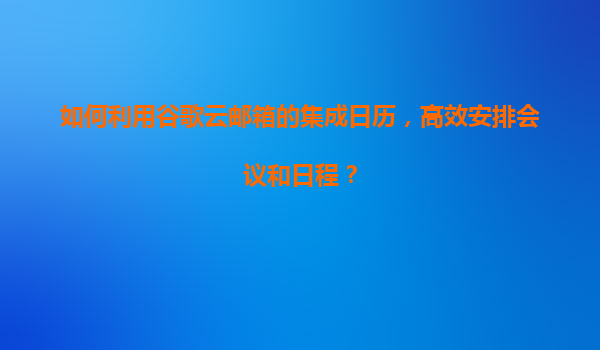2025-11-04如何利用谷歌云郵箱的集成日歷,高效安排會(huì)議和日程? 一、谷歌云郵箱與集成日歷的核心優(yōu)勢 谷歌云郵箱(Gmail)與其集成日歷(GoogleCalendar)是高效日程管理的黃金組合。其核心優(yōu)勢包括: ...