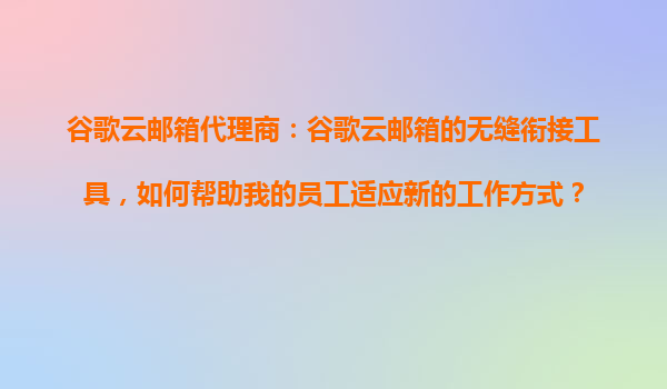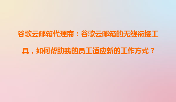 2025-10-31谷歌云郵箱代理商:谷歌云郵箱的無(wú)縫銜接工具,如何幫助我的員工適應(yīng)新的工作方式? 一、為什么選擇谷歌云郵箱作為企業(yè)協(xié)作平臺(tái)? 谷歌云郵箱(GmailforBusiness)作為全球領(lǐng)先的企業(yè)級(jí)郵件服務(wù)...
