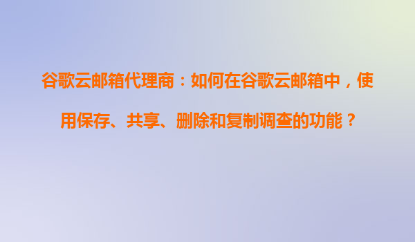2025-11-01谷歌云郵箱代理商指南:高效使用調(diào)查功能 一、引言:谷歌云郵箱與代理商的協(xié)同優(yōu)勢(shì) 谷歌云郵箱(GmailforBusiness)作為企業(yè)級(jí)郵件解決方案,通過(guò)數(shù)據(jù)加密、多層級(jí)安全防護(hù)和無(wú)限存儲(chǔ)空間,...