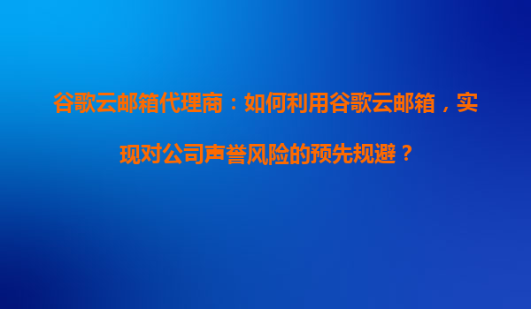 2025-11-01谷歌云郵箱代理商:如何利用谷歌云郵箱,實(shí)現(xiàn)對(duì)公司聲譽(yù)風(fēng)險(xiǎn)的預(yù)先規(guī)避? 在數(shù)字化時(shí)代,企業(yè)的聲譽(yù)管理變得尤為重要。谷歌云郵箱(GoogleWorkspace,原GSuite)作為全球領(lǐng)先的企業(yè)郵箱解決方案,不僅...