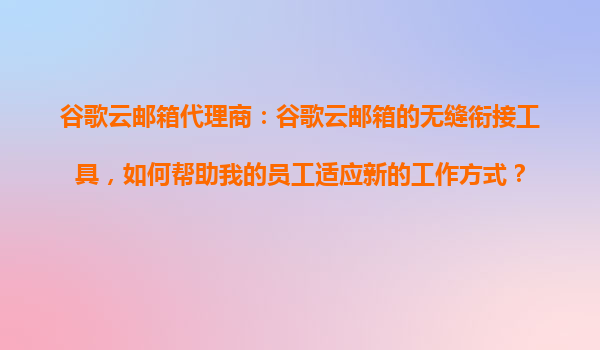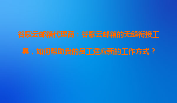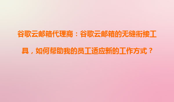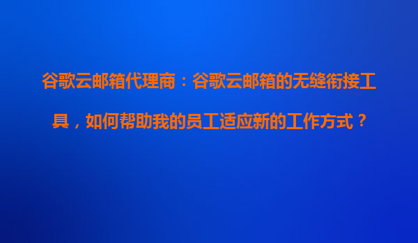 2025-10-31谷歌云郵箱代理商:谷歌云郵箱的無(wú)縫銜接工具,如何幫助我的員工適應(yīng)新的工作方式? 一、為什么選擇谷歌云郵箱作為企業(yè)協(xié)作平臺(tái)? 谷歌云郵箱(GmailforBusiness)作為全球領(lǐng)先的企業(yè)級(jí)郵件服務(wù)...