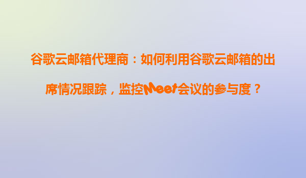 2025-10-31谷歌云郵箱代理商:如何利用谷歌云郵箱的出席情況跟蹤,監(jiān)控Meet會(huì)議的參與度? 一、谷歌云郵箱的優(yōu)勢(shì)概述 谷歌云郵箱(GmailforBusiness)作為企業(yè)級(jí)郵件解決方案,憑借其穩(wěn)定性和強(qiáng)大的功能集成,...