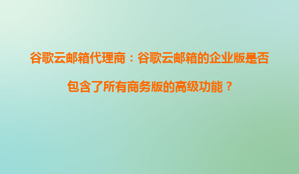 2025-10-31谷歌云郵箱企業(yè)版與商務(wù)版功能對(duì)比解析 谷歌云的Gmail服務(wù)在商務(wù)場(chǎng)景中分為企業(yè)版(GoogleWorkspaceEnterprise)和標(biāo)準(zhǔn)商務(wù)版(GoogleWorkspaceBusiness),兩者雖同屬付費(fèi)解決方案,但在功能覆蓋范圍上存...