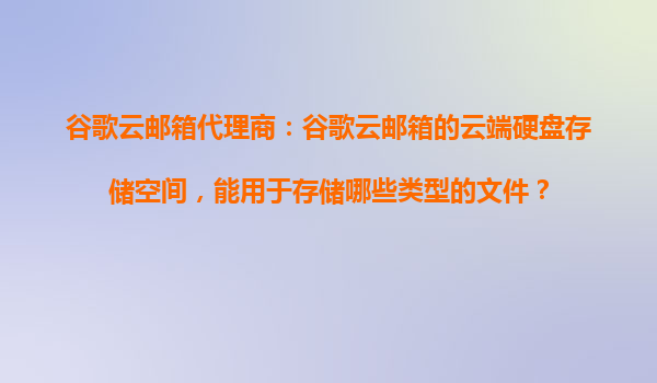 2025-10-31谷歌云郵箱代理商:谷歌云郵箱的云端硬盤存儲(chǔ)空間,能用于存儲(chǔ)哪些類型的文件? 一、谷歌云郵箱云端硬盤的核心優(yōu)勢(shì) 谷歌云郵箱(Gmail)作為全球領(lǐng)先的電子郵件服務(wù),與其深度整合的GoogleDrive云端...