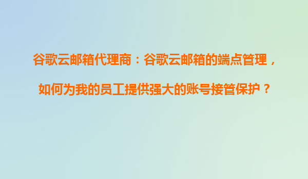 2025-10-31谷歌云郵箱代理商:如何通過端點(diǎn)管理為員工提供強(qiáng)大的賬號(hào)接管保護(hù) 隨著數(shù)字化轉(zhuǎn)型加速,企業(yè)郵箱的安全性成為重中之重。谷歌云郵箱(GoogleWorkspace)憑借其強(qiáng)大的安全功能和靈活的端點(diǎn)管理能力,可有效防范...