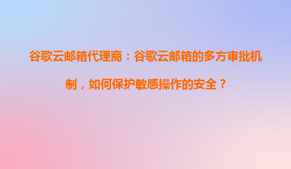 2025-10-30谷歌云郵箱代理商:谷歌云郵箱的多方審批機制如何保護敏感操作的安全 在當今數(shù)字化時代,企業(yè)對數(shù)據(jù)安全和操作合規(guī)性的要求越來越高。谷歌云郵箱(GoogleWorkspace)作為全球領(lǐng)先的企業(yè)級郵箱解決方案,憑借其強大...